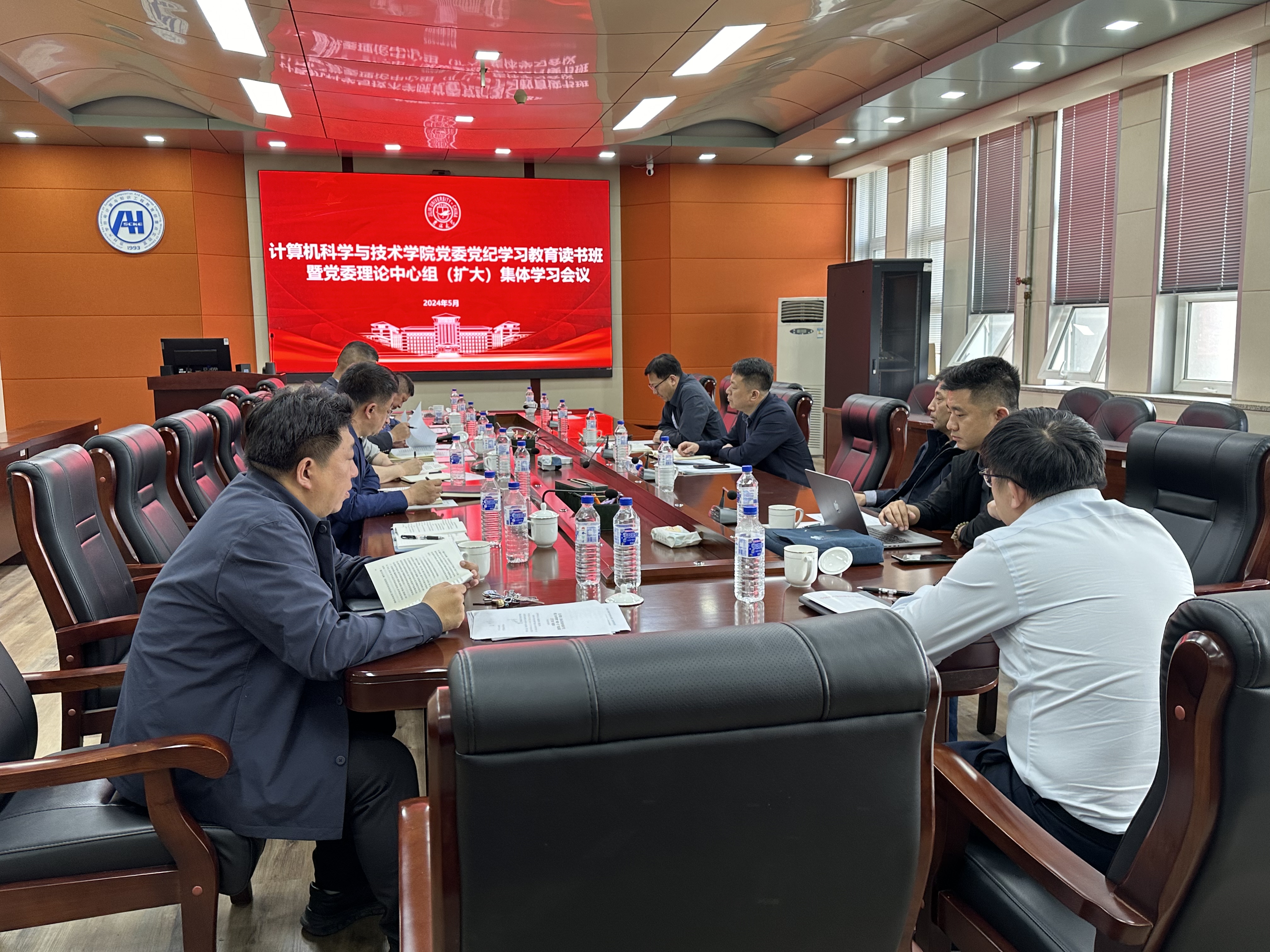 党委在王湘浩楼A521会议室召开党委理论学习中心组(扩大)集体学习会议暨党纪学习教育读书班开班仪式。学校党建联络员陈炳伟同志到会指导,学院领导班子成员、党委委员、纪委委员、党支部书记参加会议,会议由党委书记宫皓宇主持。