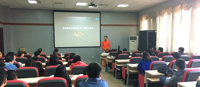 当天下午,曾在《Cell》《Nature》《Science》等国际顶级学术杂志发表20余篇论文的金鑫博士还为吉大师生作了题为《基因数据分析的过去、现在与未来》的报告。