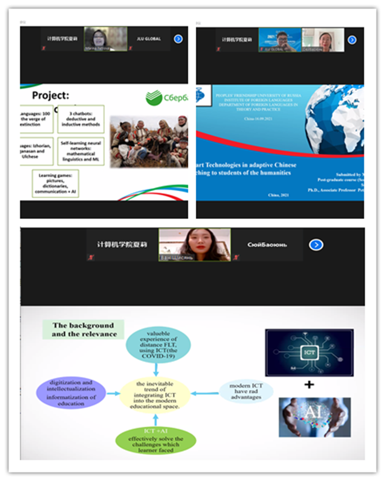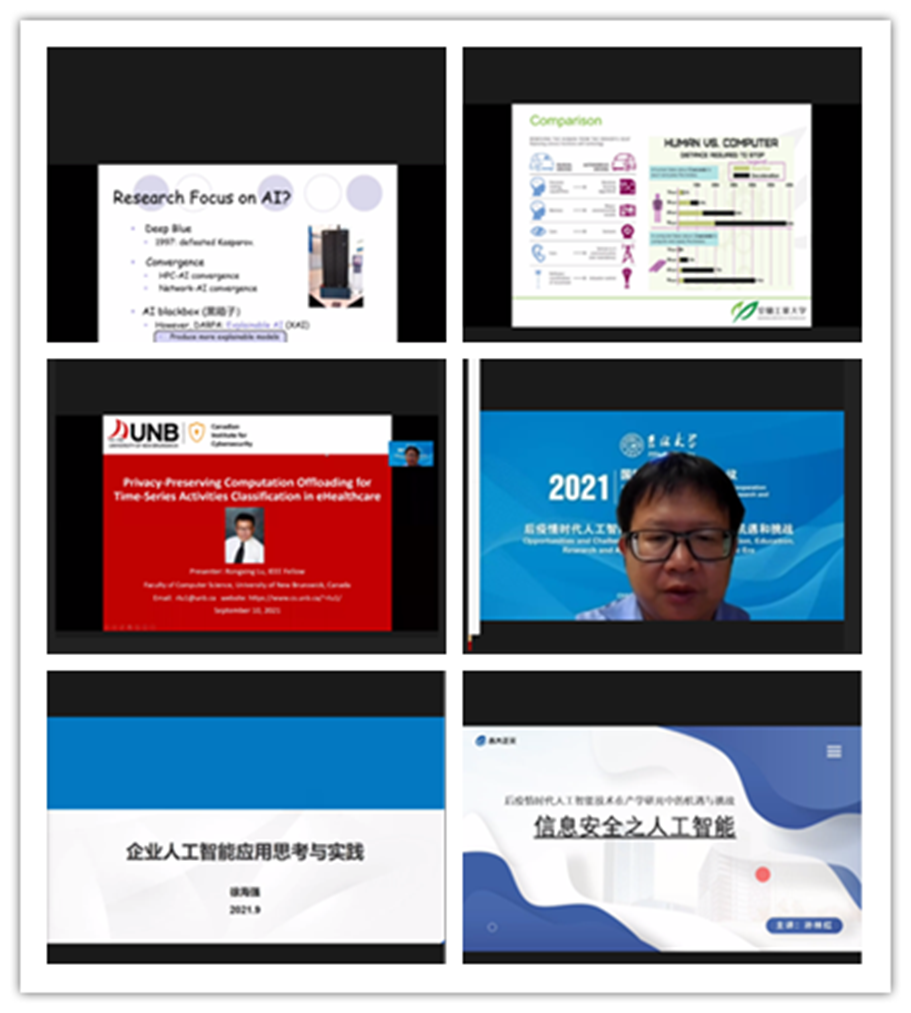 此次分论坛以“后疫情时代人工智能技术在产学研用中的机遇和挑战”为主题,邀请了来自中国、美国、加拿大、日本、俄罗斯等国高校、企业和科研机构的计算机等相关领域专家学者参加了论坛。会上AAAS、IEEE Fellow、美国天普大学科学技术学院国际事务部主任Jie WU教授,日本工程院外籍院士、日本室兰工业大学副校长董冕雄教授,加拿大新不伦瑞克大学的Rongxing LU教授,中国一汽集团数字化部徐海强主任和中国吉大正元创新中心科学家孙林红高级研究员,俄罗斯人民友谊大学Marina Petrova教授,Baoyun XU博士,Shixian WANG博士等做了精彩的学术报告。报告讲座主题包括“How to Balance Teaching, Research, Service, (and Administration)”,“Privacy Preserving Computation Offloading for Time-Series Activities Classification in eHealthcare”,“Towards post pandemic era: empirical decision-making system for autonomous vehicles”,“企业人工智能应用思考与实践”,“后疫情时代人工智能技术在产学研用中的机遇与挑战:信息安全之人工智能”,“Creating an Individual Educational Trajectory of Students in AI conditions”,“Smart Technologies in adaptive Chinese teaching to students of the humanities”,“Information and communication technologies with elements of artificial intelligence in foreign language teaching at a university”。讲座主要针对后疫情时代的AI应用,从学术界和工业界的角度,围绕计算机领域前沿展开讨论。参会人员对每场讲座都抱有极高的热情,学术交流氛围浓厚。