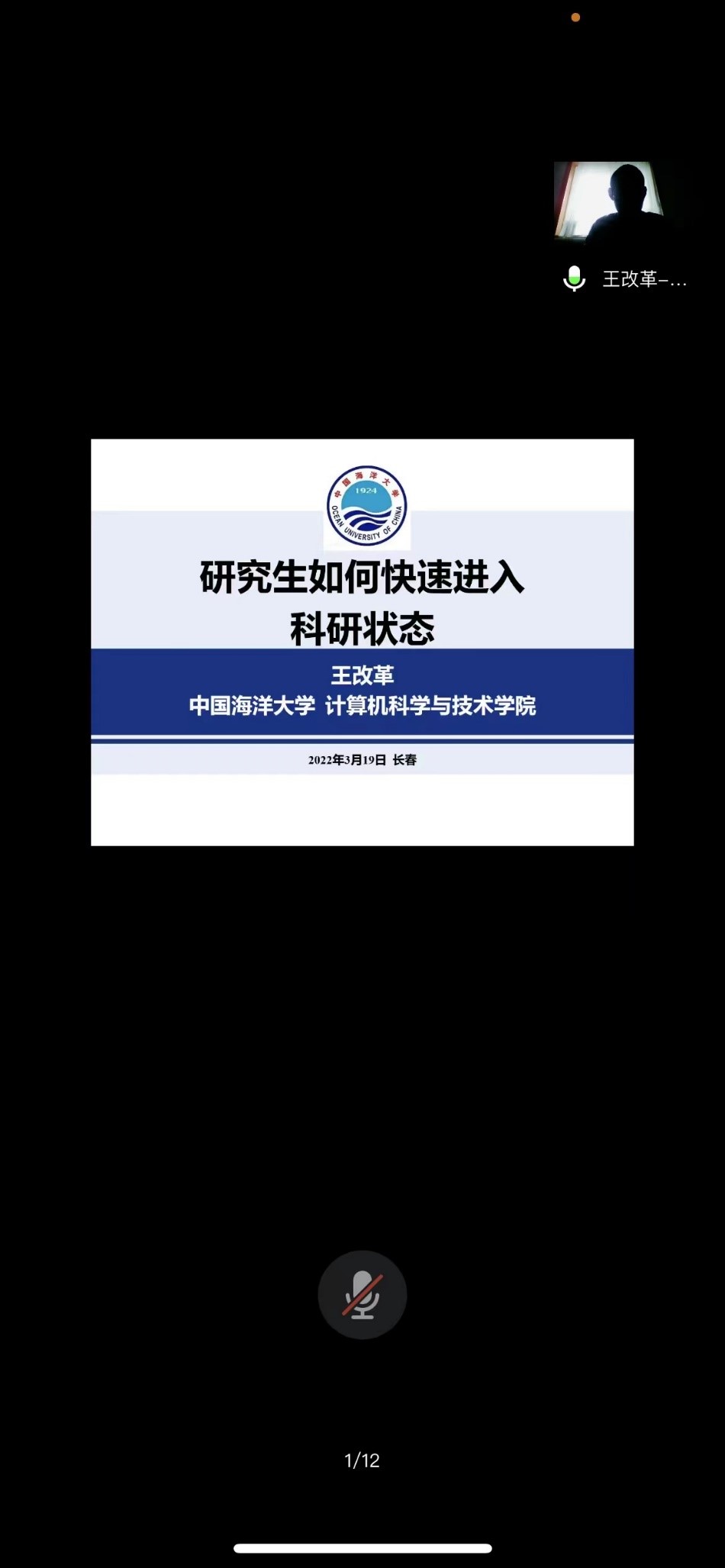 2022年3月19日 下午14:00,中国海洋大学王改革副教授应a片网
