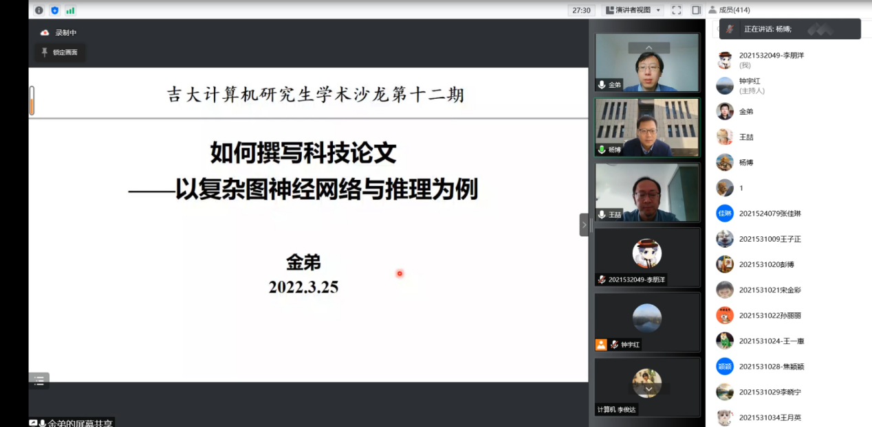 正值抗疫的关键时期,金弟老师为两院师生带来了学术分享,报告总计三个小时,共计500余人参会,展示了两院师生在疫情关键时期锐意进取、积极向上的精神面貌。