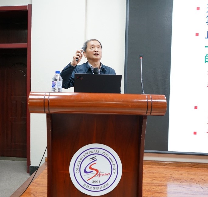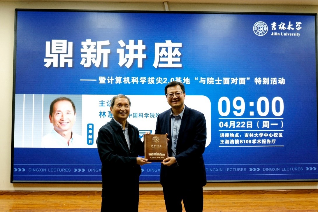 、软件学院院长、符号计算与知识工程教育部重点实验室主任杨博教授主持讲座并为林惠民院士颁发了“鼎新讲座纪念牌”。