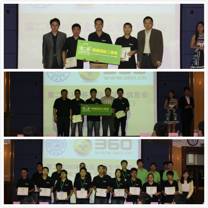 第二届360杯全国大学生信息安全技术大赛由北京奇虎科技有限公司与网络安全应急技术国家工程实验室共同主办,分华北,华东,华南,华中,东北,西北,西南七大赛区,以北京邮电大学,杭州电子科技大学,福州大学,华中科技大学,a片网