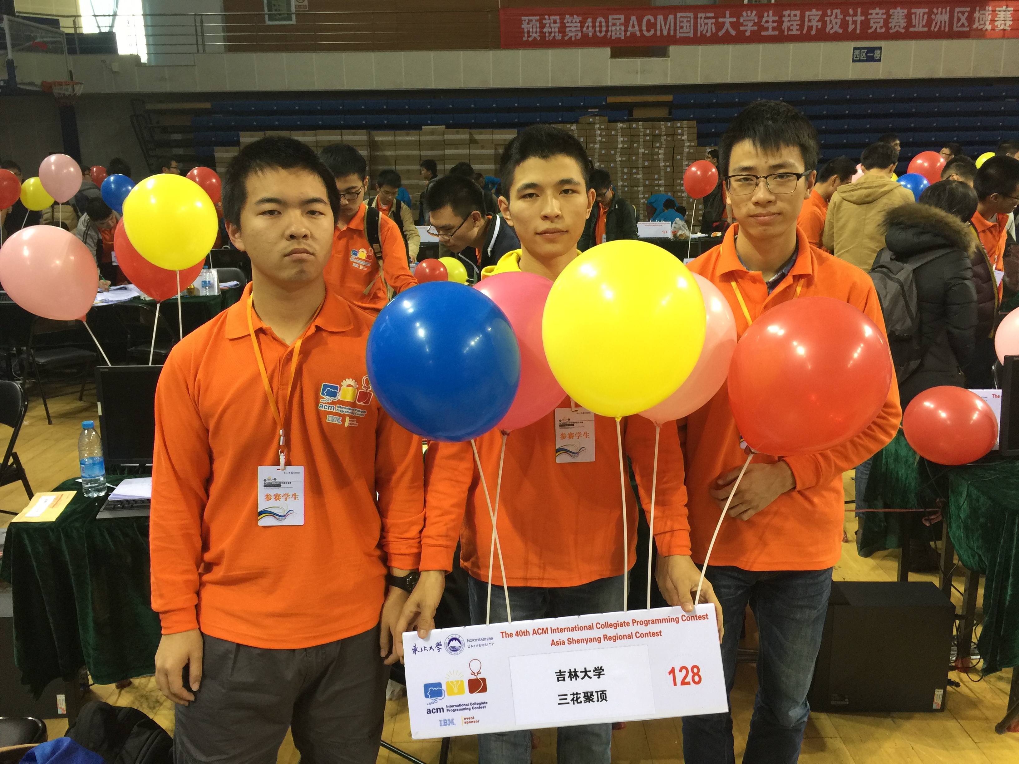 第40届ACM-ICPC国际大学生程序设计竞赛亚洲区沈阳站比赛于2015年10月24日至25日在东北大学刘长春体育馆举行。111所高校的162支参赛队参加了该站的比赛。经过激烈的角逐,共决出金牌17个,银牌34个,铜牌51个。由我校计算机学院2015级本科生邵杰晶、2013级唐敖庆班本科生王心天和软件学院2013级卓越工程师班本科生郭兰哲组成的“三花聚顶”队获得金牌,学校排名第8。