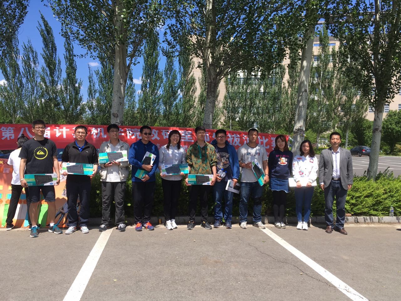 为丰富计算机学院的精神文化生活,促进在师生之间的交流,发扬团队精神,增强凝聚力,团委研究生会组织部于2017年5月25日上午在计算机学院楼前停车场举办了计算机院第八届教研室师生拔河比赛。