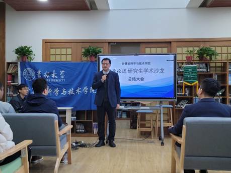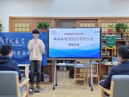 随后,由研究生会代表薛浩汇报沙龙数据总结。截止至2021年12月21日,“研学论道”学术沙龙共计举办11期,线上线下活动参与人数超500余人次,共68名研究生获得成果奖励,其中博士生51人,硕士生17人。奖励涵盖论文88篇,其中CCF-A论文12篇。活动期间,在吉大计算机研究生公众号发表了11篇相关报道。活动邀请了21位受到学院表彰奖励的荣誉讲者。参与筹办工作的学生部门3个,学生组织2个,共计19名研究生参与活动服务。