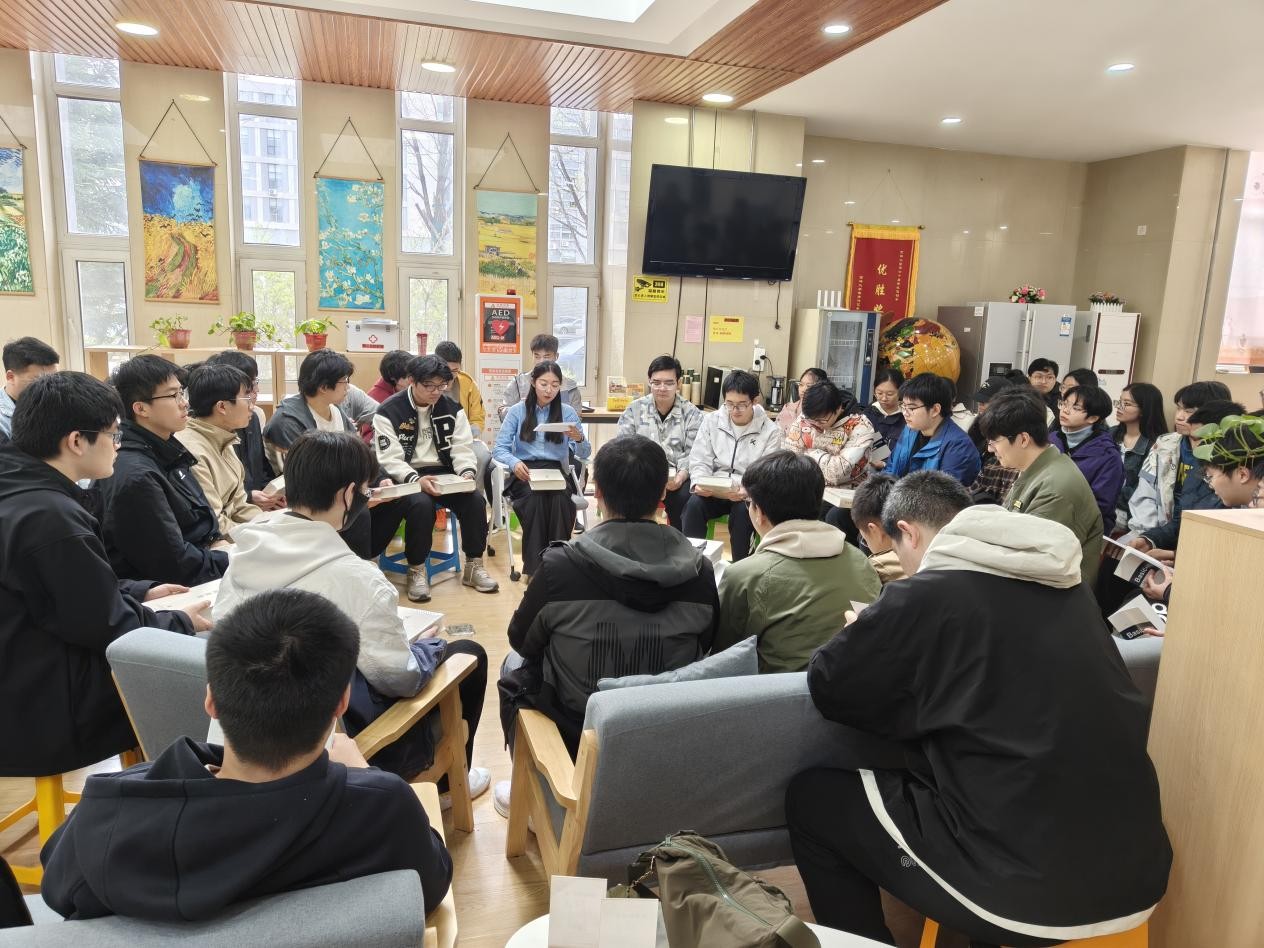 在王湘浩楼师生活动室举行《闻雁集》读书分享会,邀请燕刚老师、孙泽敏老师、王一鸣老师和研究生、本科生各年级学生代表参加。学院研工办薛珊老师和学工办冯时老师主持分享会。
