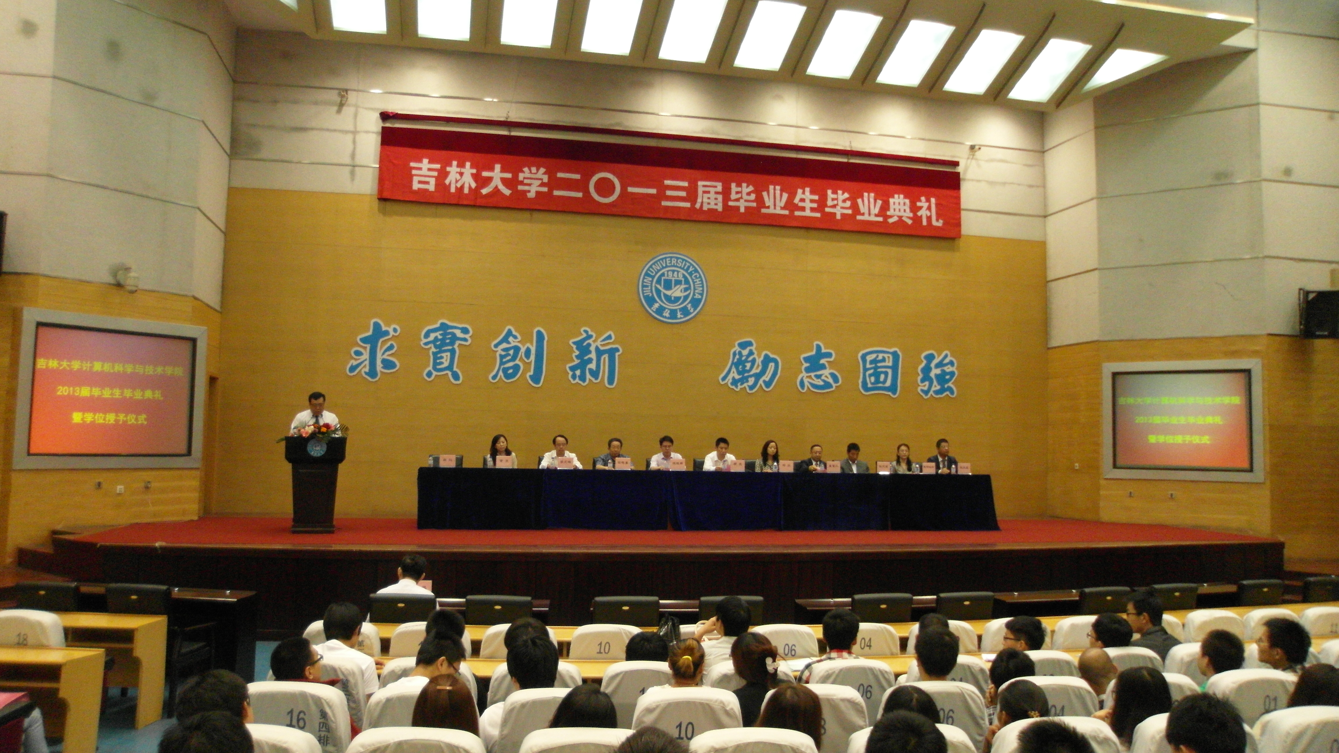 学位评定分委员会委员梁艳春教授一同上台,为取得学士学位、硕士学位和博士学位的毕业生代表授予学位,颁发学位证书并合影留念。