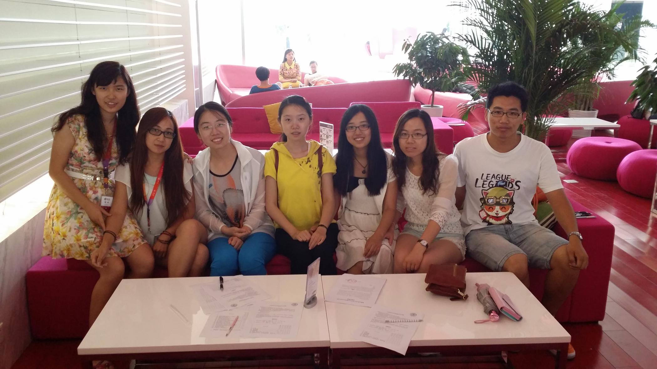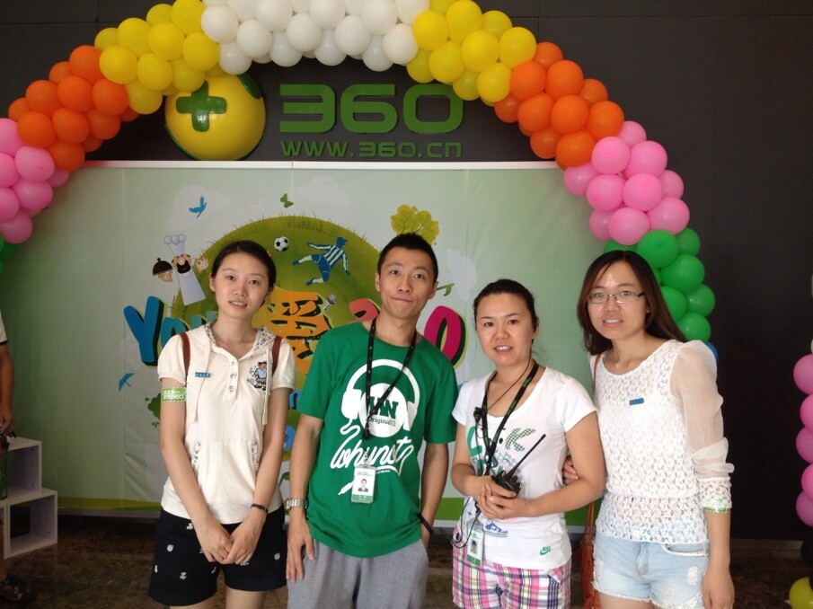 7月20日,在校友的鼎力支持下,在奇虎360公司开展了我们的调查。适逢周末,我们还是看到了少数员工在上班,他们中并不都是在加班,有个别员工是到公司自主学习。在360公司工作的同学带我们参观了公司,并介绍了公司的各个部门的情况,我们在多个部门开展了问卷调查。参观到食堂时,看到许多员工带着自己的家属参加开放日活动,可见,互联网公司对从业者的生活也很关注。