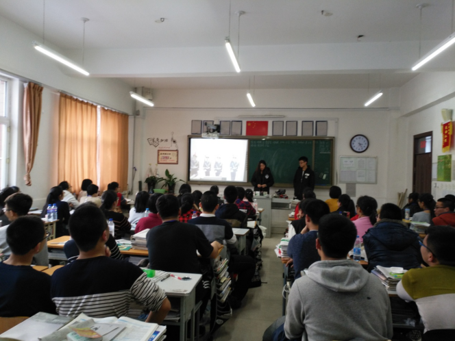 ,获得了许多深层次上的财富。他们热情的向同学们介绍了吉大的专业,社团生活以及综合实力,饮食文化生活的具体内容,展示了他们制作的PPT以及视频——“吉大欢迎你”,让学弟学妹们看到大学生活的丰富多彩和吉大校园环境及综合实力的强大,也让同学们看到了他们在大学环境中得到的收获。演讲后老师让他们与高中学子们进行详细的交流,同学们围绕着学习、心态以及吉大生活问了许多,现场气氛很热烈,而他们也争着回答学弟学妹们提出的问题。最后,在同学们的不舍道别中,张水涵等同学结束了此次实践活动。