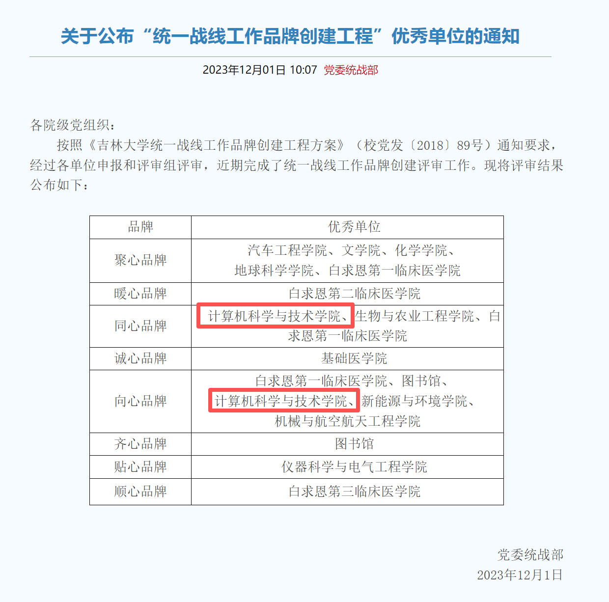 统一战线工作品牌创建工程方案》(校党发〔2018〕89 号)要求,经单位申报、评审组专业评审后最终确定。我院在 “同心品牌”“向心品牌” 创建过程中,始终坚持党建引领,凝聚统战力量,打造出具有学院特色的统战工作模式,这一成果得到评审组的充分肯定。